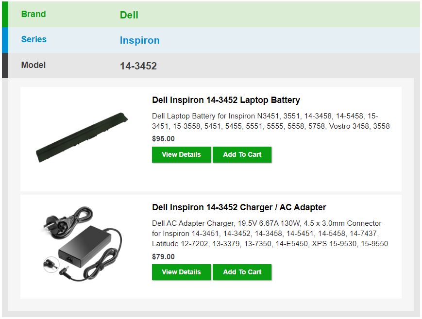 3 step search wizard on the market. Our database and search wizard can display a suitable charger and battery with 98% accuracy for major laptop brands in market. Considering the vast number of brands, series and models our current database hosts approximately 150,000 models of laptops.